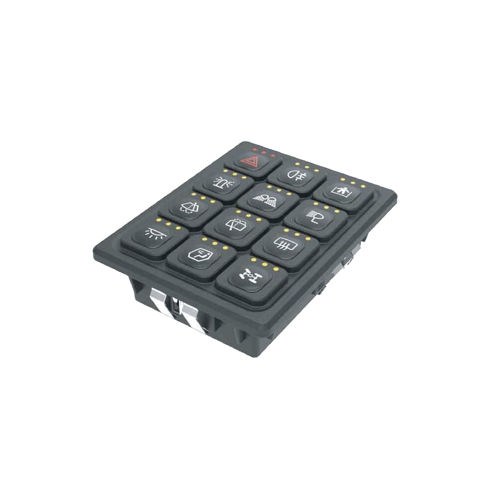 STAR-SWITCH IC12, CAN knappsats med 12 utbytbara knappar. Den kan monteras liggande eller stående. Panelen ansluts till 12V och till ett CAN-nätverk.